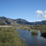 Arriving at the SG River trail, the dry, parched river bed of September flowed with water. We stopped in at the Encanto Park in Duarte. A helicopter flying low was headed up the canyon. A massive peloton cruised by, perhaps the Montrose Ride. I snapped pictures of Mount Baldy between the chain links of the bridge to the park.