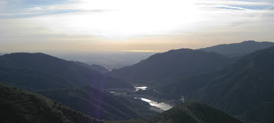 With the excitement of the circus, I needed to move on and the rolling hills beyond the fork called my name. I made it to the Point of No Return (fork plus four). Glendora Ridge Road angles up the mountain on the right side of the photo. This is the bottom of "the wall" miles 5-8 on the way to Baldy Village.